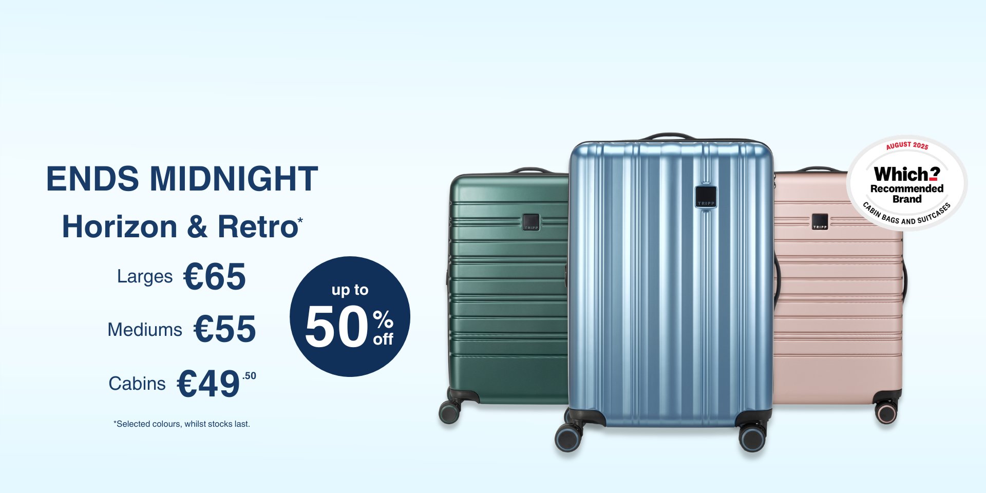 Discover the fantastic range of suitcases, cabin cases, and travel bags on the Tripp Luggage website. As the UK’s number one retailer of suitcases and luggage, you’ll find various luggage options in multiple styles, sizes and colours. Tripp suitcases are available in soft and hard shell options, offering you a fabulously stylish yet durable piece of luggage...