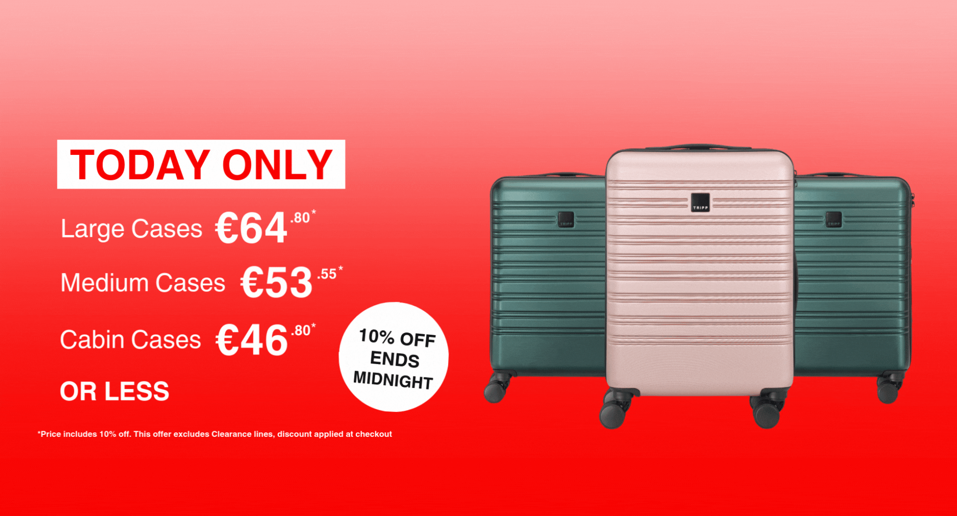Discover the fantastic range of suitcases, cabin cases, and travel bags on the Tripp Luggage website. As the UK’s number one retailer of suitcases and luggage, you’ll find various luggage options in multiple styles, sizes and colours. Tripp suitcases are available in soft and hard shell options, offering you a fabulously stylish yet durable piece of luggage...