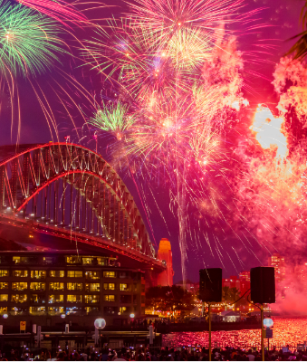 See in the new year before almost anyone else. Sydney’s Harbour Bridge fireworks are legendary, lighting up the sky in dazzling colour over the Opera House and the sparkling harbour. Join thousands along Circular Quay, soak up the views from Mrs Macquarie’s Point, or book a harbour cruise for front-row seats on the water.